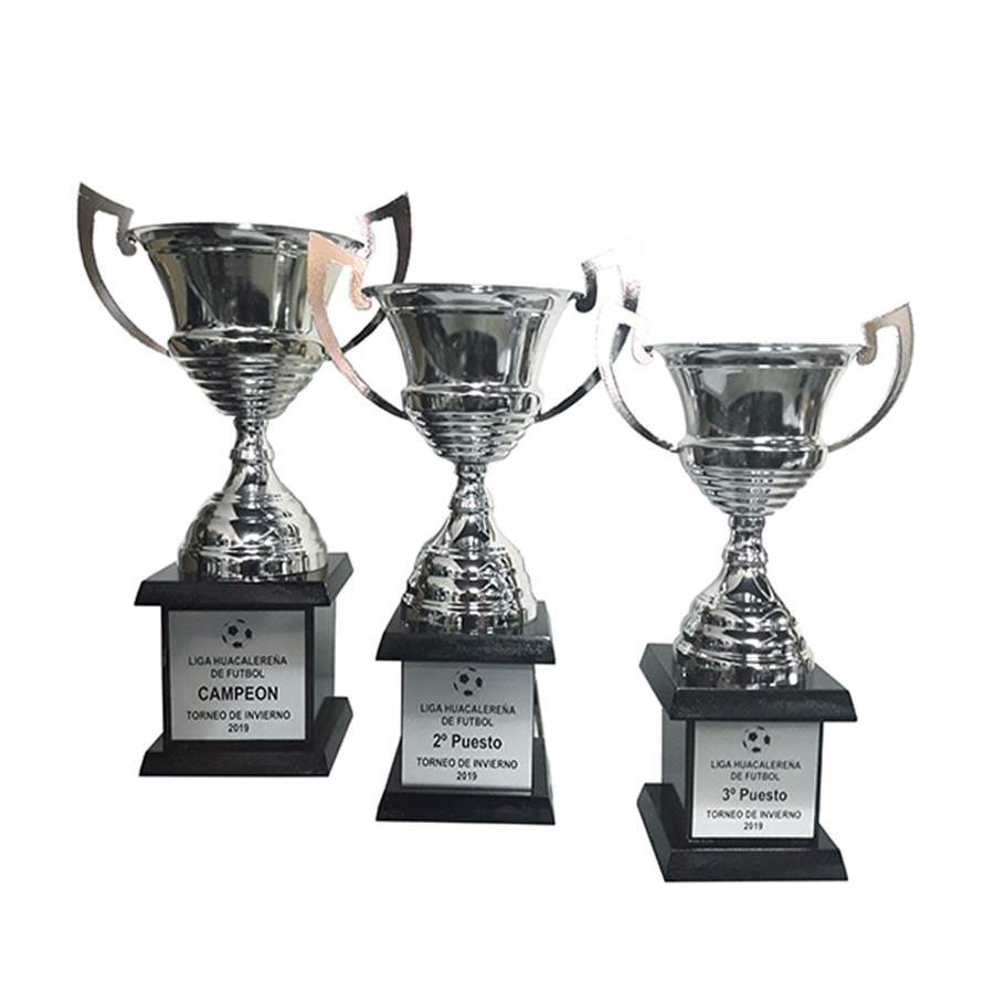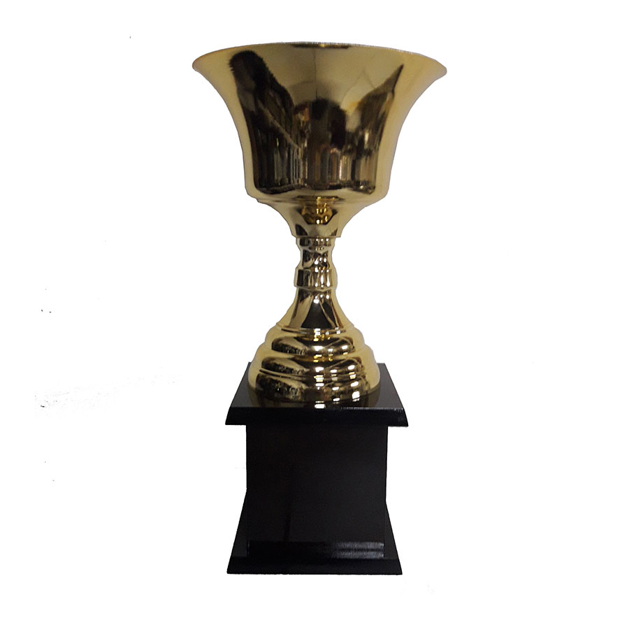Copas de hierro metalizado con base cajón de madera maciza.